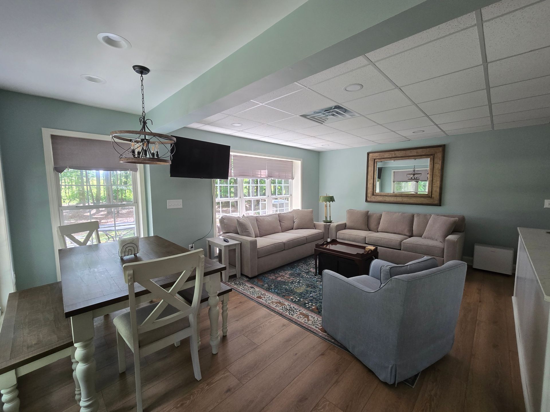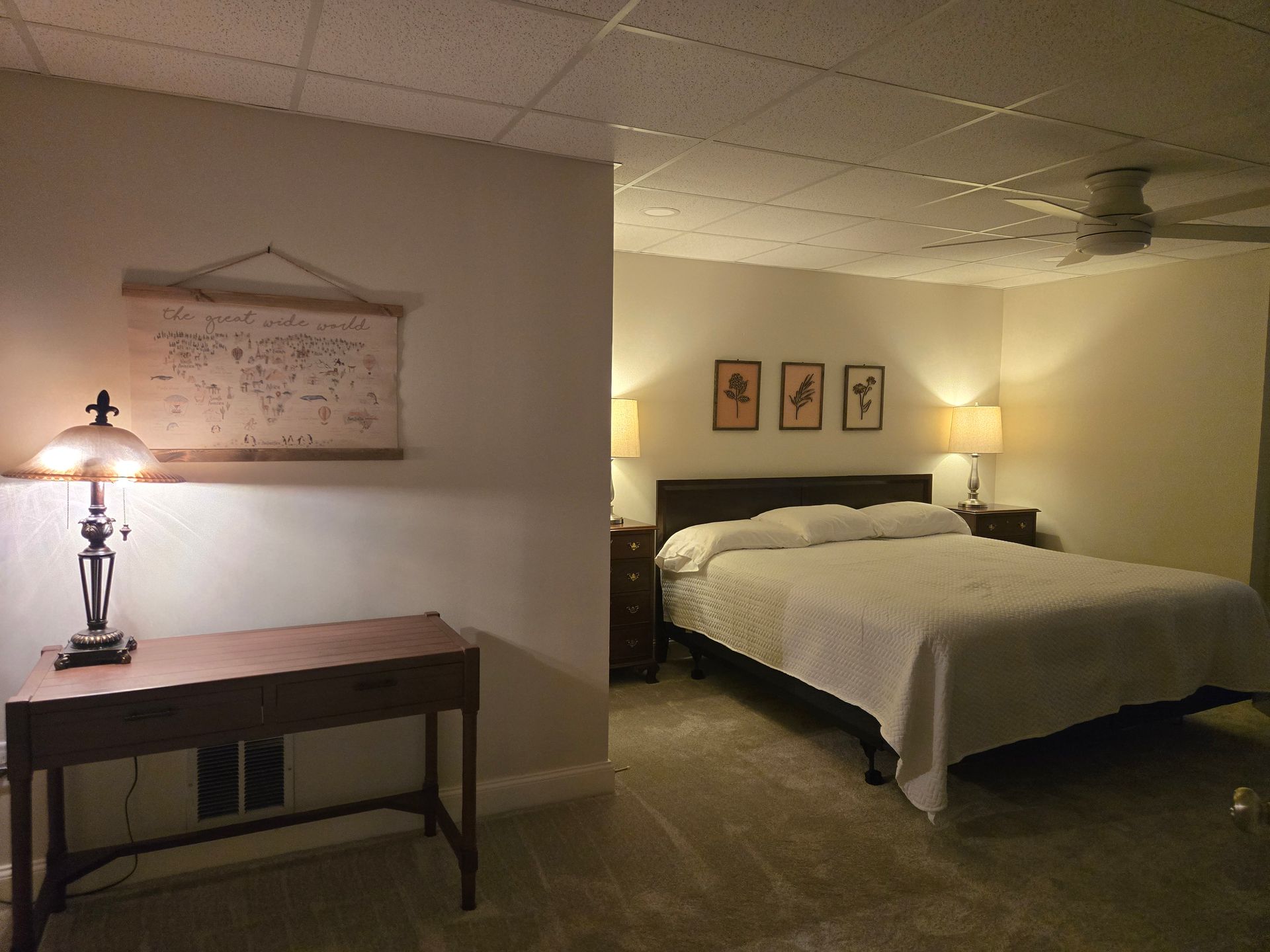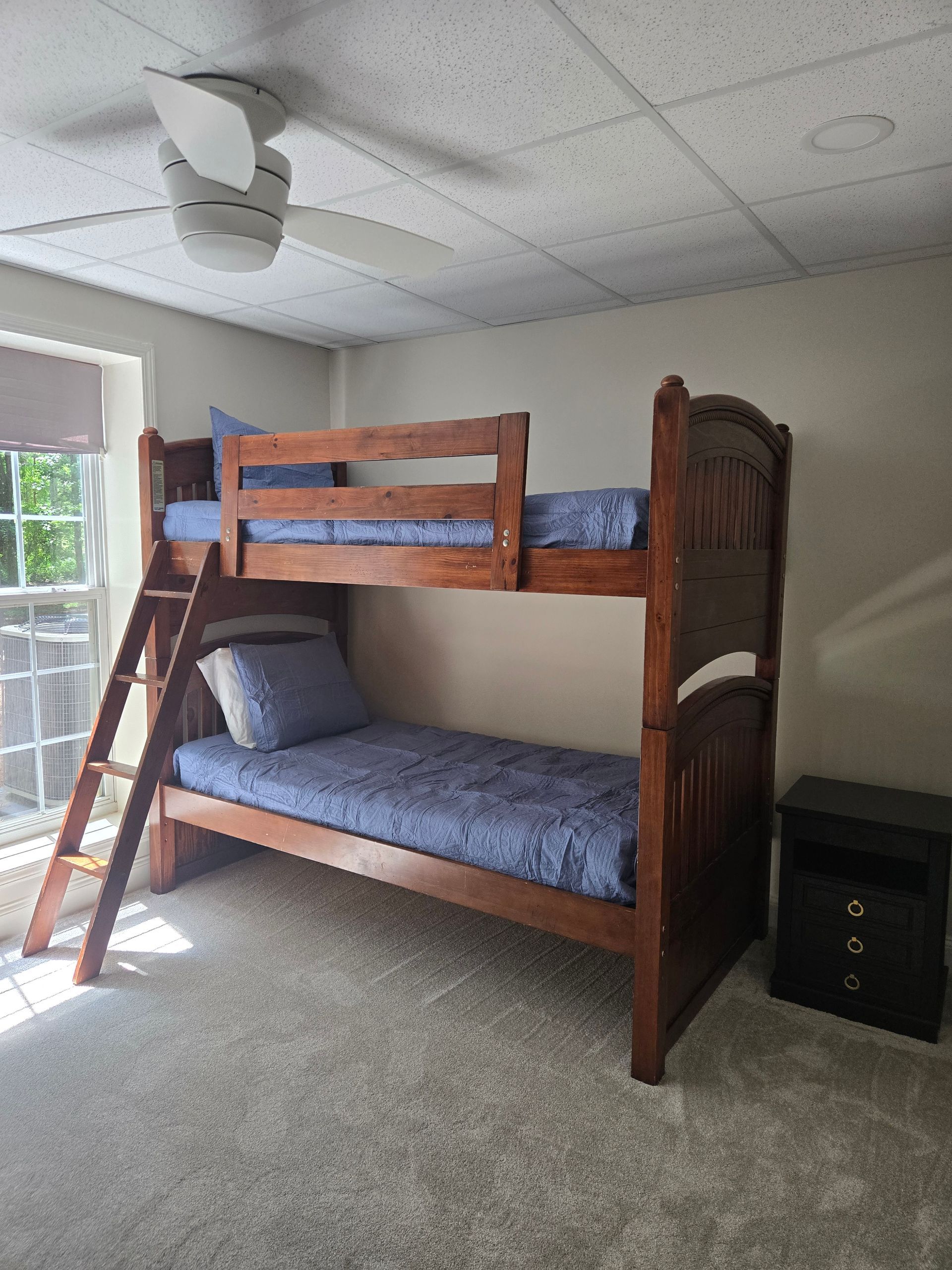 Main House Downstairs is located in our sunlit basement, featuring 2 bedrooms and a bonus room: a king, 2 sets of bunk beds, and a pull-out sleeper couch, sleeping 8 comfortably, plus an extra bonus room. The apartment has its own entrance, 2 full bathrooms, a fully furnished kitchen, dining and living room. Laundry facilities are located within the apartment.